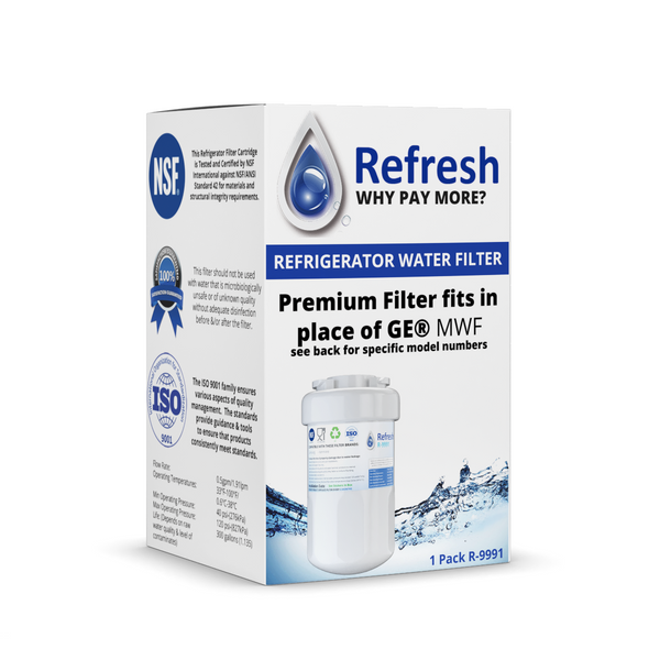 GE MWF, MWFP, GWF, GWFA, GWF01, GWF06, MWFA, MWFINT and KENMORE models 46-9991, 469991, 9991 and BRITA filters GERF-100, GWF, GWFA, HWF